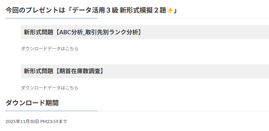 2025.11 データ活用3級「新形式(2種)模擬」を含む【模擬問題】販売開始は11月22日(土)~START(NEW料金表はこちら)